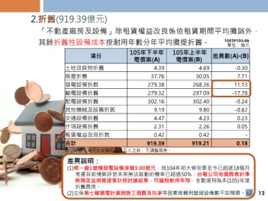 Page 13 - 「105年下半年電價檢討」之各成本細項、合理利潤值、平均電價及電價調整幅度