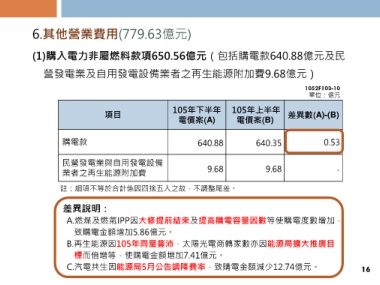 Page 17 - 「105年下半年電價檢討」之各成本細項、合理利潤值、平均電價及電價調整幅度
