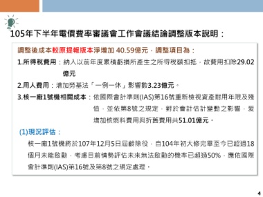 105年下半年電價費率審議會工作會議結論調整版本說明: