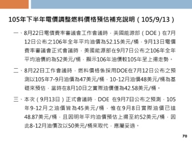 105年下半年電價調整燃料價格預估補充說明(105/9/13)