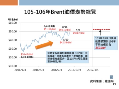 $42.58/bbl 能源部預測106年